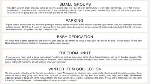 This Weeks Announcements